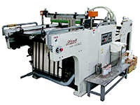 Модель Sakurai MF-80 специально предназначена для печати или нанесения лака на жестких материалах толщиной до 3 мм (картон, пластик, жесть). Особенность этой машины заключается в отсутствии печатного вакуумного цилиндра. В момент нанесения изображения запечатываемый материал располагается на плоском вакуумном столе. Транспортировка листа в зону печати и на выводной транспортер осуществляется специальными штангами с захватами. От самонаклада до приемки лист материала движется практически в горизонтальной плоскости, испытывая минимальные изгибающие нагрузки. Благодаря этому полностью исключается удар «хвоста» листа по сетке печатной формы, что случается в цилиндровых трафаретных машинах из-за плохого облегания печатного цилиндра жестким материалом. Машина имеет отодвигающийся по специальным направляющим автоматический самонаклад. Это облегчает профилактическое обслуживание автомата и позволяет работать в режиме ручной подачи листов.